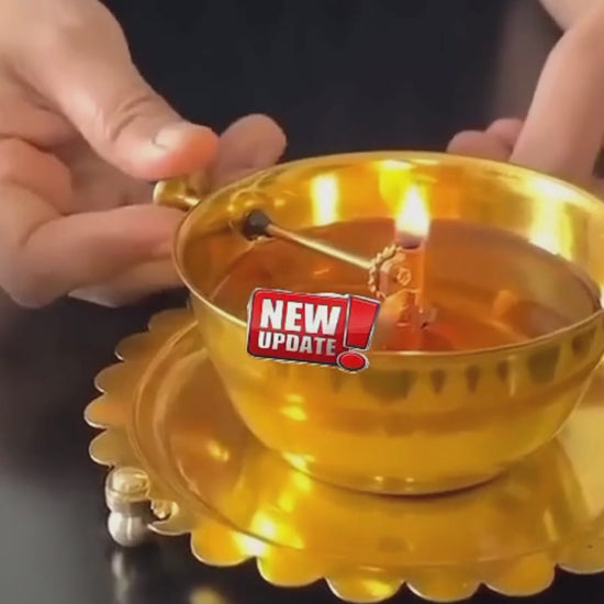 Golden Brass Akhand Diya with Adjustable Bati | Long-Lasting Deepam Jyot Diya for Pooja & Temple Use ( Stay Lit for 48 Hours, Bati Included )